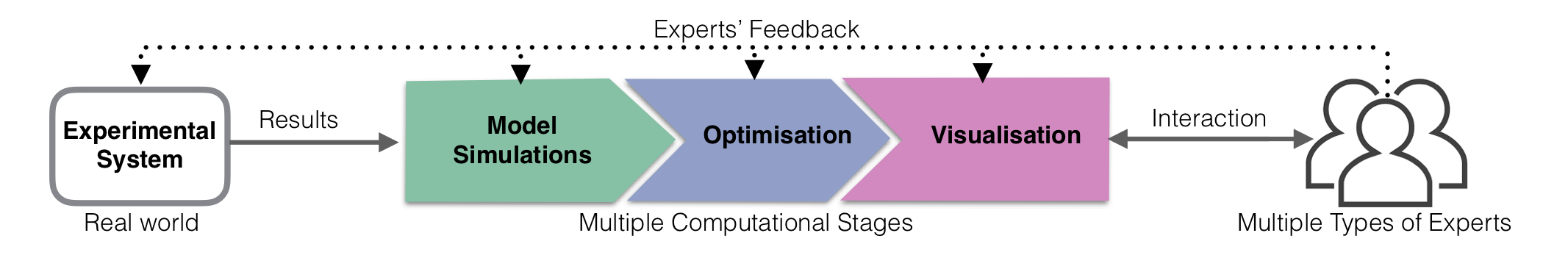 Nous proposons un cadre d’exploration de modèle où plusieurs experts interagissent avec une représentation visuelle des résultats optimisés de simulation de modèle. Les commentaires des experts ont un impact sur l’exploration à toutes les étapes du pipeline de calcul (Boukhelifa, 2019).